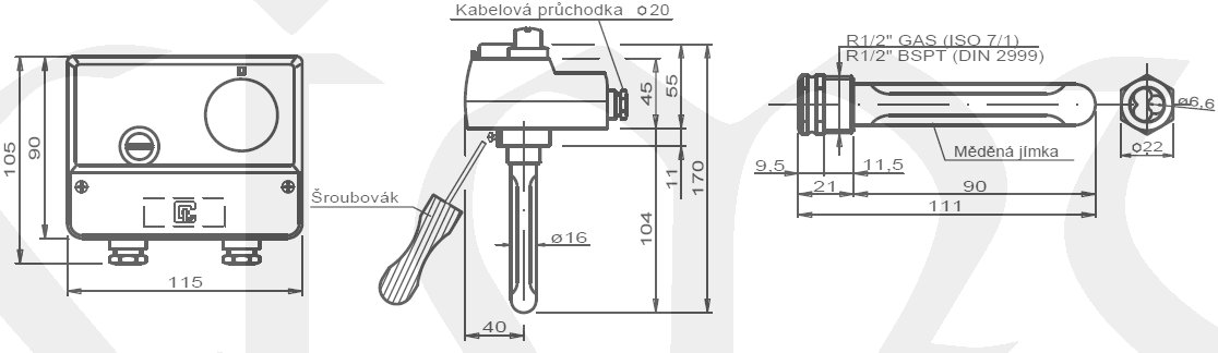 Instalace se provádí na měděnou jímku se závitem G1/2".