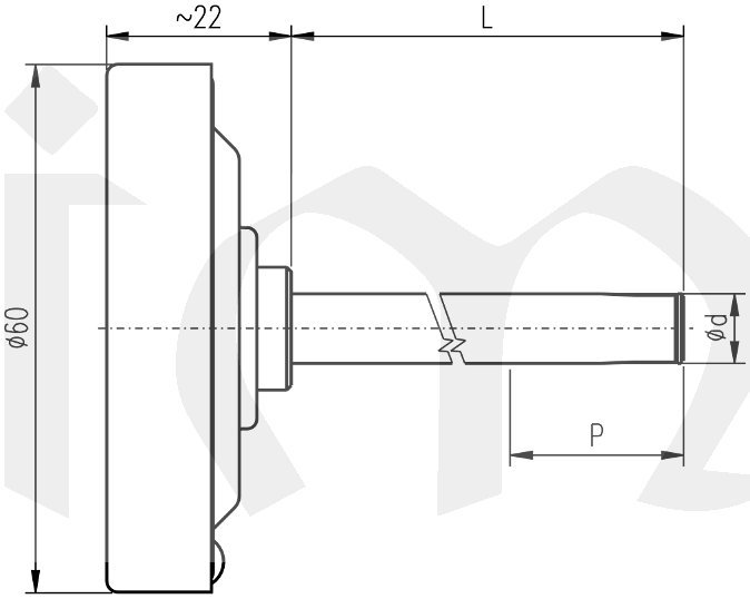 Teploměr se skládá z hlavice a stonku vyrobených z ušlechtilé oceli tř.17. Pro méně náročné aplikace je stonek od délky 630mm zhotoven z nelegované oceli s povrchovou úpravou Zn. V hlavici je upevněn ukazatel s číselníkem a stonek, v němž je upevněn měřicí systém. Tento systém je zhotoven z dvojkovu ve tvaru válcové spirály, která se působením tepla otáčí kolem své osy. Pohyb je přenášen na ukazatel, který vykazuje určitou výchylku udávající teplotu na stupnici. Aby údaje teploměru byly správné, je nutno při zabudování zajistit, že celý měřicí systém bude ponořen v měřené teplotě. Doporučená hloubka ponoru P je alespoň 60mm, pro rozsah 0-350°C minimálně 80mm. Teploměry s rozsahem 0 až 350°C a 0 až 450°C se nesmějí používat bez jímky.