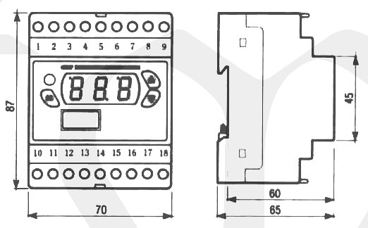 | Vstup digitálního termostatu | Termočlánek J (Fe-CuNi), Termočlánek K (NiCr-NiAl), Termočlánek L, Termočlánek R, Termočlánek S, Termočlánek T, Termočlánek E, Termočlánek N, Pt100, Ni100, 0-20mA, 4-20mA, 0-10V |