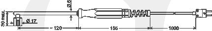 Úhlové provedení, pružné pásky NiCr-Ni, rukojeť z umělé hmoty, silikonový kabel, konektor NST1200