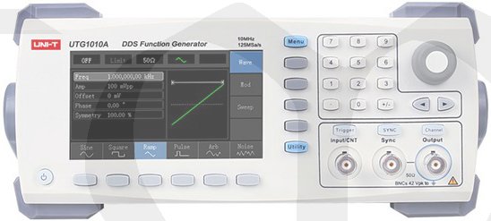 Moderní generátor ze série UTG1000A nabízí 1 kanál, vzorkování 125 MS/s, maximální výstupní frekvenci 10 MHz a možnost připojení USB. Díky technologii DDS je schopen generovat přesné a stabilní průběhy vln s rozlišením až 1 µHz. Má výborný poměr cena/výkon a množství funkcí. Výstup je přesný, stabilní a čistý s minimálním zkreslením. Uživatelsky přívětivý panel s jednoduchým ovládáním a přehledný displej vám umožňuje pracovat mnohem efektivněji a rychleji.