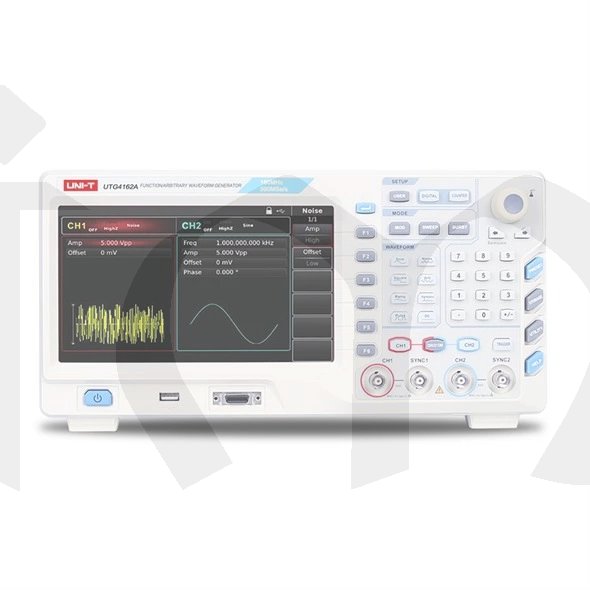 Generátor funkcí / libovolných průběhů UTG-4162A je moderní dvoukanálový generátor využívající technologii přímé digitální syntézy k vytvoření přesného a stabilního výstupu libovolných tvarů vlny s rozlišením 1μHz, maximální výstupní frekvenci 160 MHz, vzorkování 500 MS/s.