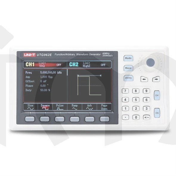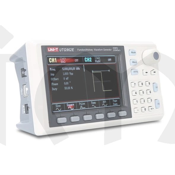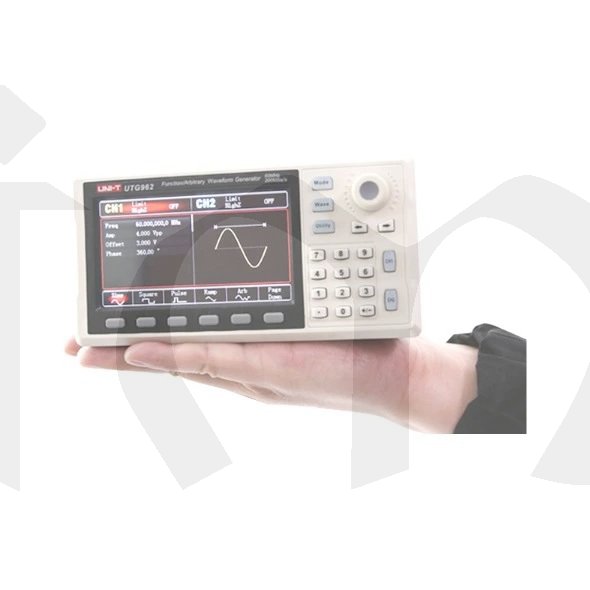 Generátor funkcí (libovolných průběhů vln) UTG-962E ze série UTG 900E je dvoukanálový generátor využívající technologii přímé digitální syntézy k vytvoření přesného a stabilního signálu libovolných tvarů vlny s rozlišením 1μHz a nízkým zkreslením. K dispozici je modulování signálů různými modulacemi jako AM, PM, FM, FSK z interního nebo externího zdroje, lineárním a logaritmickým frekvenčním rozmítáním.