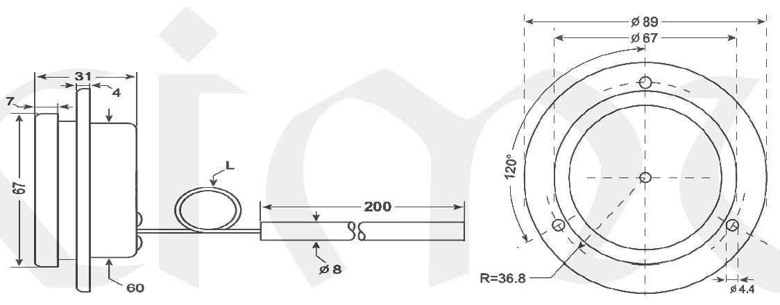Montáž teploměru se provádí nasunutím hlavice teploměru do otvoru po přední přírubu dle příslušného rozměrového náčrtu a umístěním teploměrového čidla do jímky. Těleso teploměru je možno umístit v libovolné poloze. Těleso teploměru i příruba jsou kovové, nerez ocel plech. Třída přesnosti 2.5%. K zamezení rozkmitání kapiláry během provozu je nutné upevnění minimálně v dalších dvou bodech přibližně rovnoměrně rozložených v délce kapiláry. Zapouzdřená nerezová hlavice teploměru může být umístěna do prostředí jednoduchého podle ČSN 33 0300 v rozmezí -30+100 °C. Nejmenší povolený poloměr ohybu spojovací kapiláry je 5 mm. V provozu nevyžaduje žádnou údržbu.