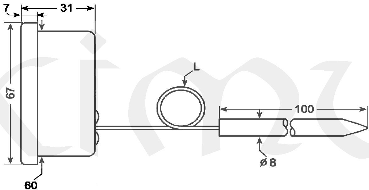 Kapilární teploměr E5649 pr.60mm, 0..+300°C, 1.5m, bez uchycení