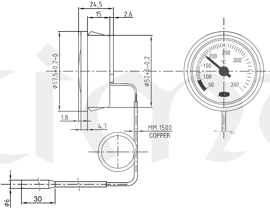 Montáž teploměru se provádí nasunutím hlavice teploměru do otvoru dle příslušného rozměrového náčrtu a umístěním teploměrového