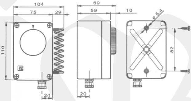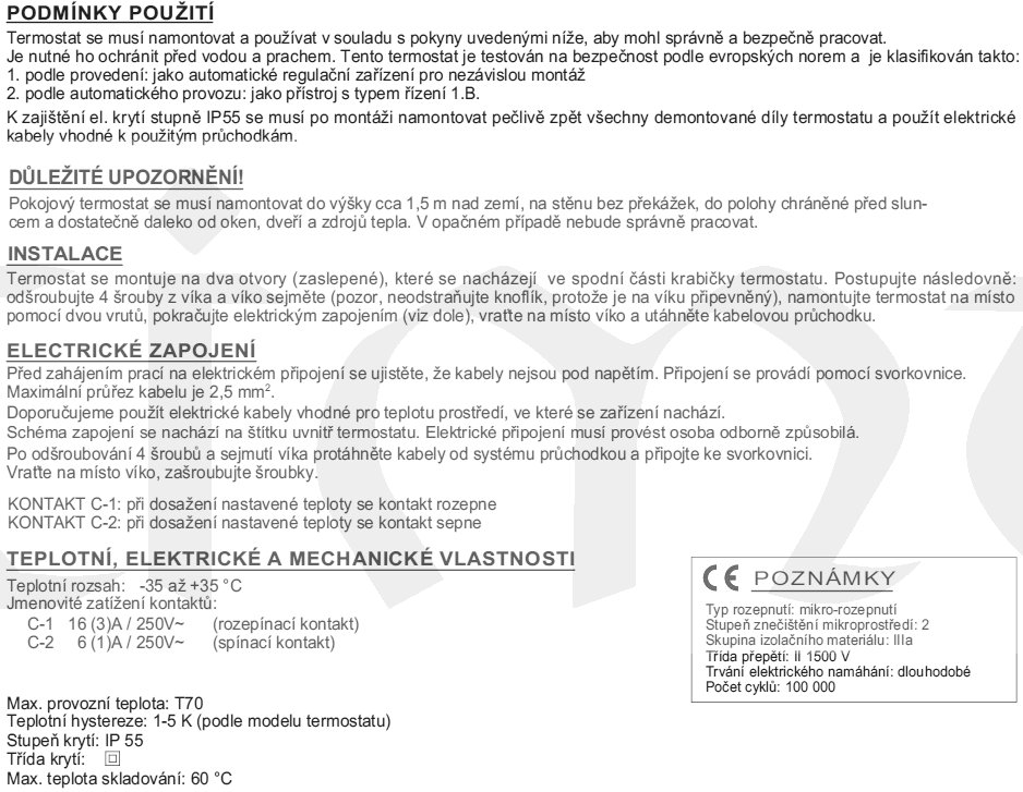 Termostat E1443 kapilární prostorový -35..+35°C; nerez čidlo, kryt IP55, přepínací kontakt