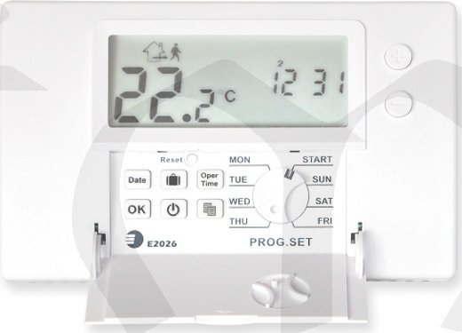 Týdenní programovatelný termostat s intuitivním ovládáním a podsvíceným displejem, pomocí kterého lze jednoduše a efektivně nastavit kontrolu teploty v místnosti. Vzhledem ke svému širokému využití je vhodný k regulaci všech typů kotlů, elektrických přímotopů, spíná zařízení od 0-230V s maximální zátěží 16A. Je vybaven obdobným programovaním jako termostat 093, uživatel již není omezen programem, kdy se nastavené dny a teploty opakují po-pá, víkend.