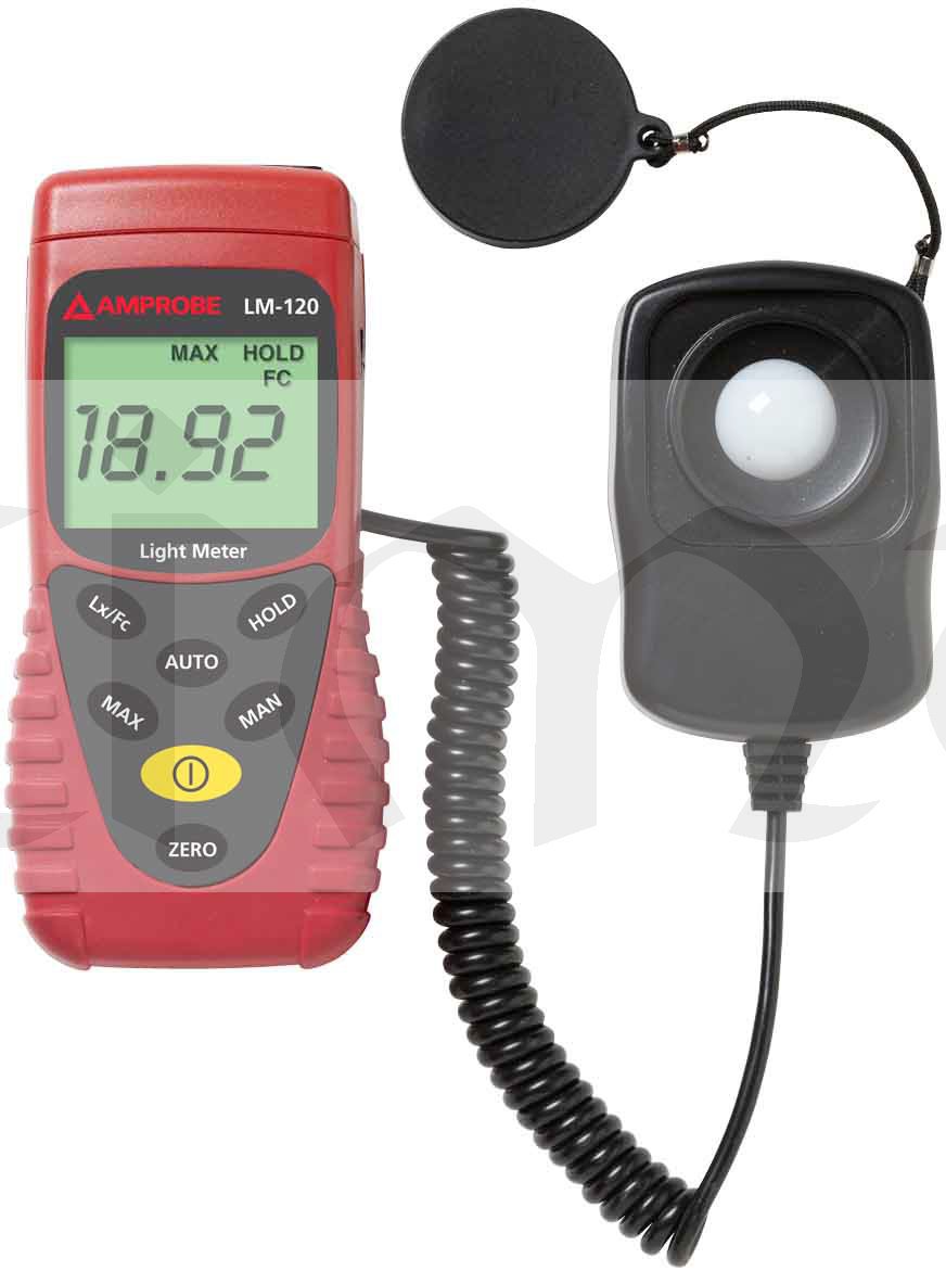 Luxmetr Amprobe LM-120 s digitálním vyhodnocením naměřených hodnot osvětlení je určen k základním měřením v rozsahu od 0,01 do 200 000 lux.