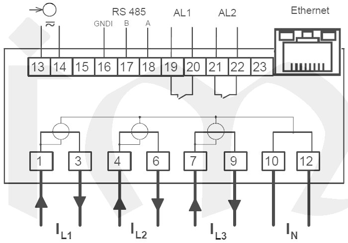 Určeno pro přímé (do 63 A) nebo nepřímé měření ve 3fázových 4vodičových / 3vodičových symetrických a nesymetrických systémech.