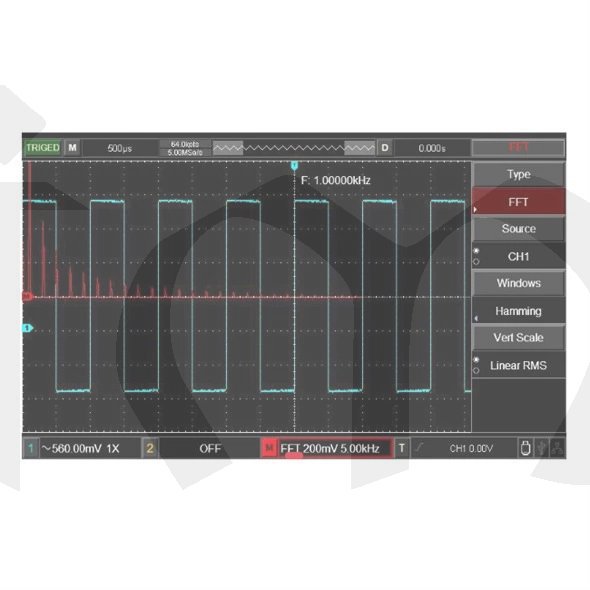 - automatické měření parametrů signálu: Max, Min, High, Low, Middle, Pk-Pk, Ample, Mean, Cycle Mean, RMS, Cycle RMS, Area, Cycle Area, OverShoot, PreShoot, Period, Freq, Rise, Fall, +Width, -Width, +Duty, -Duty, RiseDelay, FallDelay, Phase, FRFR, FRFF, FFFR, FFFF, FRLF, FRLR, FFLR, FFLF