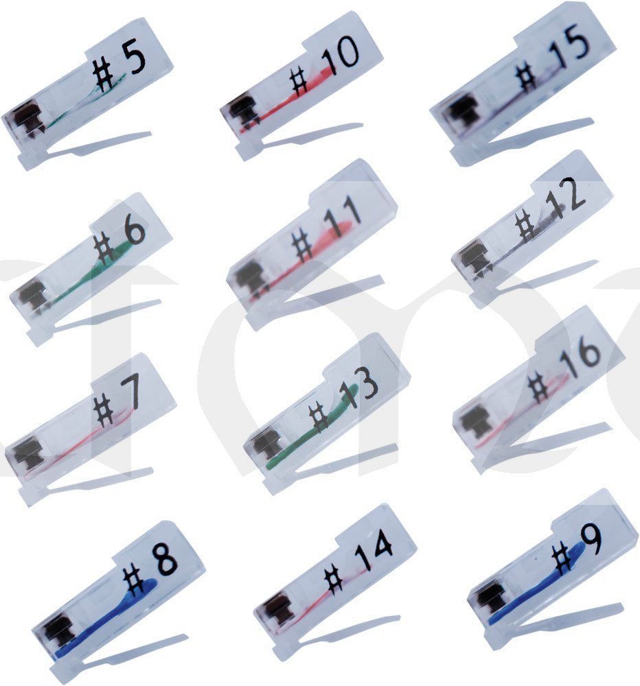 A1043 - vyhledávač,sada II, příslušenství pro přístroje MI2014 a MI2016 Lokátory zjednodušují a urychlují očíslování a identifikaci zásuvek LAN. Set obsahuje lokátory s číslem od #5 do #16.