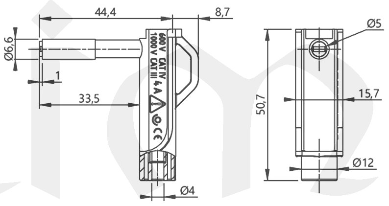 Jmenovité napětí: 1000 V CAT II / 1000 V CAT III / 600 V CAT IV, zesílená izolace, stupeň znečištění 2.