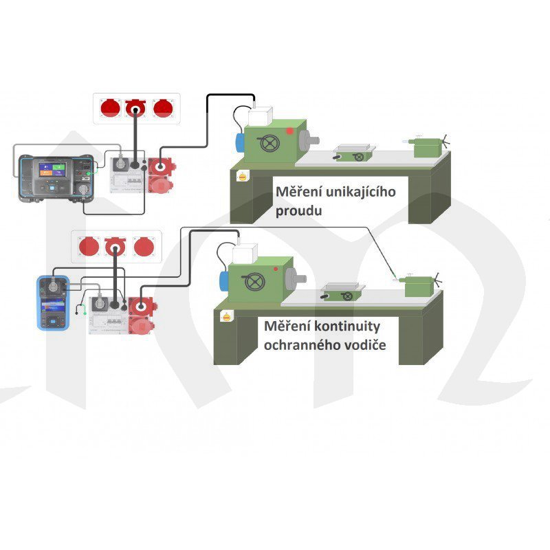 Aktivní testování na 3-f zařízení, včetně odporu PE řidiče, izolačního odporu a unikajícího proudu;