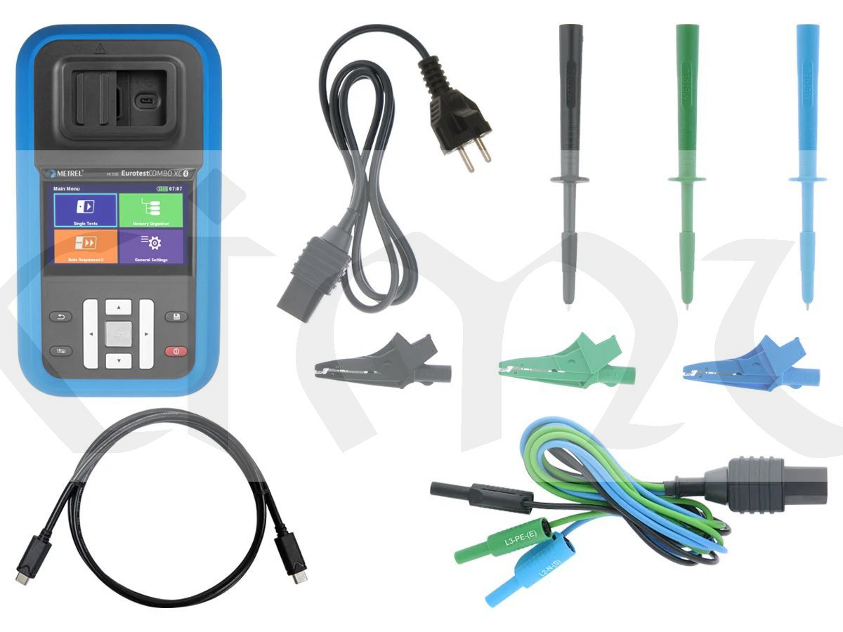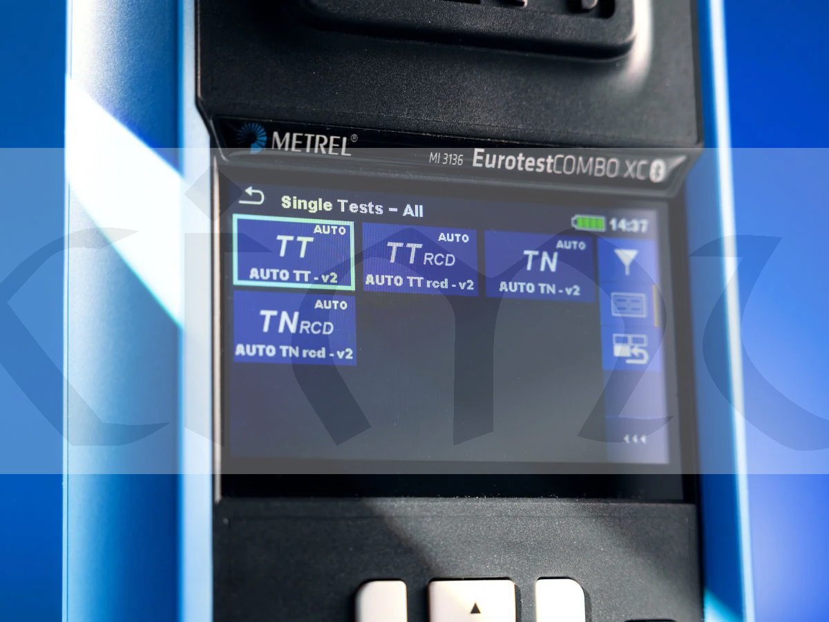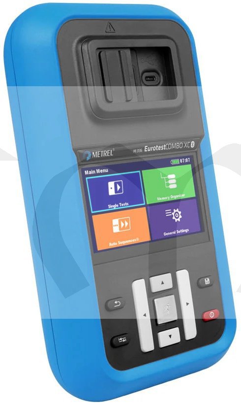 MI 3136 EurotestCOMBO XC provádí měření kontinuity, izolace, RCD, impedance smyčky, impedance sítě, napětí, frekvence, zemního odporu a test sledu fází požadované normou EN 61557.