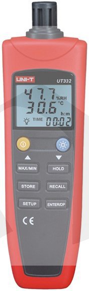 UT 332 je digitální teploměr a vlhkoměr v jednom přístroji. Čidlo v hlavici přístroje zajistí přesné výsledky měření, které se zobrazují na přehledném displeji s možností podsvícení. Přístroj zároveň slouží jako Data Logger, tedy výsledky ukládá do paměti v nastavitelném intervalu. Uložit dokáže až 100 naměřených hodnot. Díky USB rozhraní a přiloženému CD se softwarem je možné pohodlně přenést data do počítače k analýze. UT-332 je tak vhodný ke sledování vývoje teploty a vlhkosti, čímž se uplatní v domácnostech, přírodních vědách, průmyslu, skladech citlivých materiálů, stavebnictví a mnoha dalších sektorech.