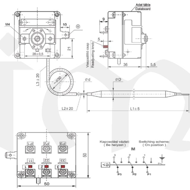 Typ | Vypínací teplota | Průměr čidla | Délka čidla | Délka kapiláry | Délka ochranné manžety |