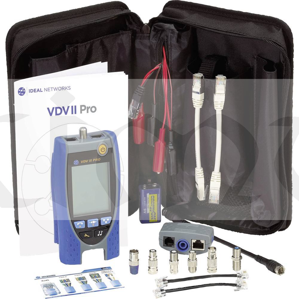 VDV II Pro se snadno ovládá a umožňuje rychlou kontrolu měděných kabelů od hlasových, datových a video instalací, jako jsou telefonní linky, datové kabely bezpečnostní a video sítě, a to jak v domácnosti, tak v kanceláři a průmyslové prostředí. Prémiový model mezi testery kabelů ukazuje chyby ve vedení jako je přerušení, zkrat, špatné zapojení a prohozené páry, zatímco reflektometr TDR podporuje vyhledávání poškození. Rozpozná analogové (PBX) a digitální (ISDN) telefonní služby a ukazuje rychlost přensu dat v síti a duplex statusu. K dispozici je připojení pro konektory RJ11, RJ45, koax F a BNC. Zkoušečka je vybavena velkým podsvíceným LCD displejem a integrovaným remote adaptérem na spodní straně přístroje.
