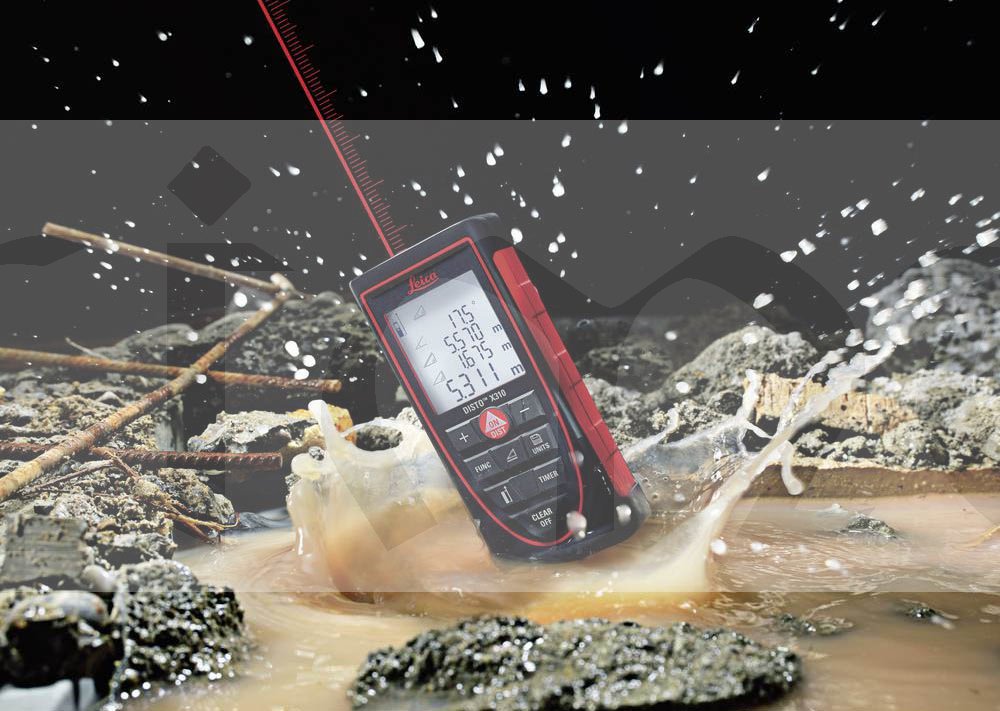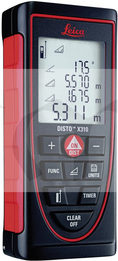 Leica DISTO™ X-310 je velmi odolný laserový měřič a chrání citlivé měřicí prvky masivními gumovými komponentami. To dělá z přístroje DISTO™ X 310 jedno z nejbytelnějších zařízení na trhu. Pouzdro a klávesnice jsou odolné proti vodě a prachu. Takže čištění pod tekoucí vodou není vůbec problémem. Sklony se zobrazují v rozmezí 360° a je možné je zobrazovat i v procentech (%). Laserový měřič vzdálenosti Disto X310 je za dobrých podmínek schopen změřit délku s úžasnou přesností ±1mm a to až do vzdálenosti 80m na běžném povrchu a do 100m na cílovou desku Leica +750Kč. Pomocí snímače sklonu můžete také určit nepřímé výšky.
