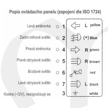- LED kontrolky signalizují, které světla jsou zapnutá a přenášejí se správně do zásuvky tažného zařízení