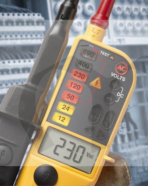 Měření stejnosměrného a střídavého napětí do 690 V také s vibrační indikací, měření odporu, test propojení, indikace sledu fází, jednopólová detekce fáze, měření napětí bez baterie, LC displej a funkce HOLD integrovaná svítilna.