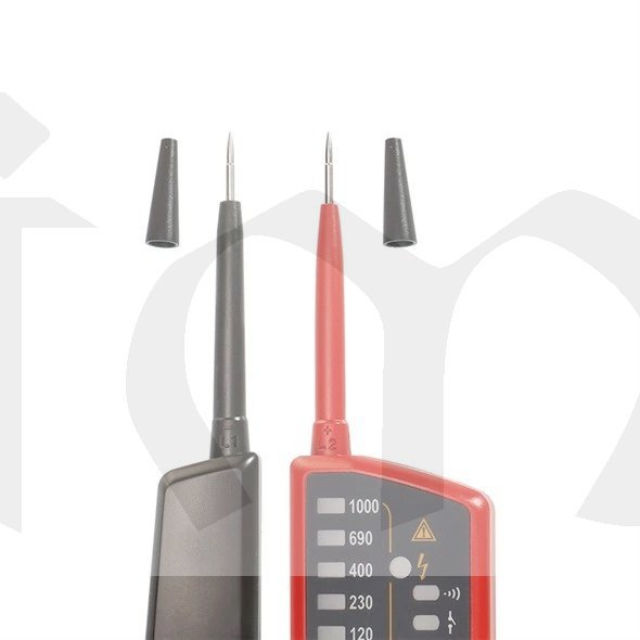 ZkoušečkaUT-18E. Tester ze série UT18 je navržen pro testování střídavého / stejnosměrného napětí (až 1000 V), třífázového napětí, sledu fází, kontinuity a dalších. Tato řada je zařazena do kategorie CAT IV 600V a splňuje standard krytí IP65. Zkoušečka napětí je navržena tak, aby usnadnila práci elektrikářům, technikům a dalším odborníkům pracujícím s elektřinou ve všech prostředích.