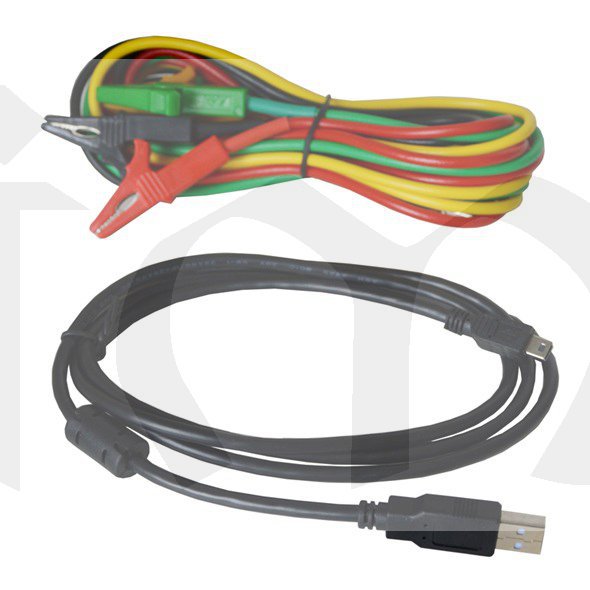 baterie, proudové svorky (3ks), testovací vodiče (1 žlutý, 1 zelený, 1 červený, 1 černý)