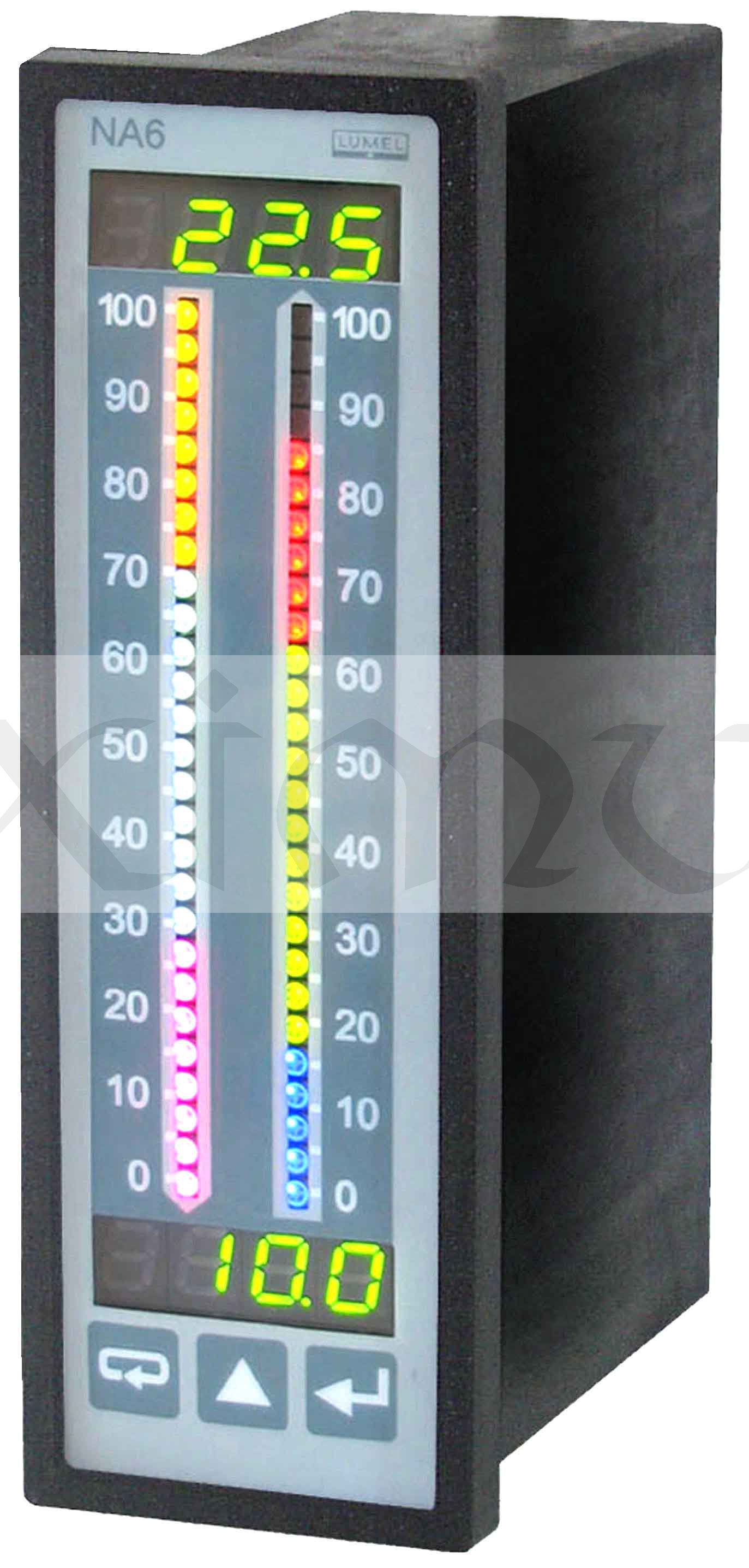 Bargraf - sloupcový ukazatel typ NA6T-RGU0001000, rozměr 48x144, Tříbarevný, barva číselného displeje červená/zelená, RS485 -ne, bez výstupů, výstup: bez analogového výstupu, napájení 95..253 V ac/dc