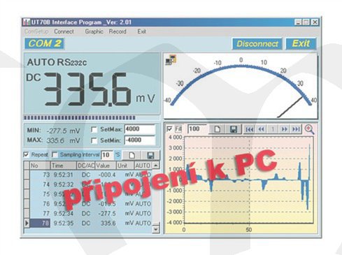 Přenosný digitální multimetr přístroj UT-70B se zdokonalenou konstrukcí, novým designem, velkým displejem. Přístroj má optoelektronické rozhraní, které zaruručuje absolutně bezpečné galvanické oddělení měřícího přístroje od PC. Je opatřen obalem ze stříkané měkké pryže, není nutné další pouzdro.