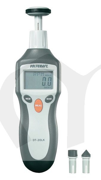Ruční měřicí přístroj pro měření otáček. Laserový paprsek umožňuje provádět měření i bez kontaktu s měřeným objektem (princip odrazu paprsku). Tento způsob měření je velmi přesný a lze jej použít i za denního světla. Pro kontaktní měření jsou k dispozici tři různé adaptéry. Naměřená hodnota je zobrazena na přehledném 5-ti místném LCD displeji. Měření počtu otáček v ot./min, frekvence v Hz, rychlosti v m/min, in/min, ft/min, yd/min a měření délky. Paměť pro min./max. hodnoty a pro 40 posledních naměřených hodnot.