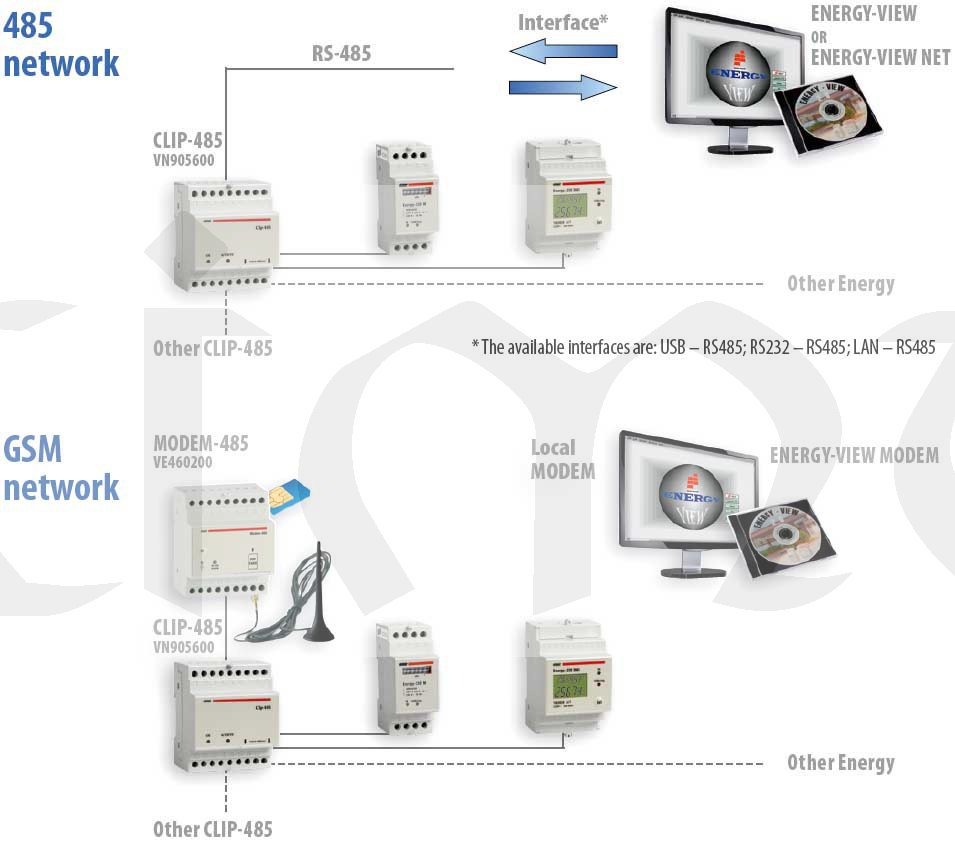 - koncentrátor pro 8 měřených míst s interface RS485 modbus protokol