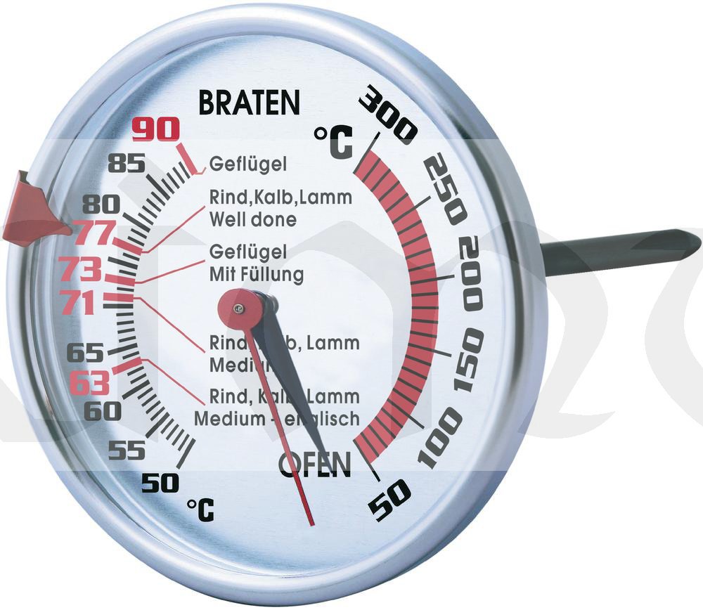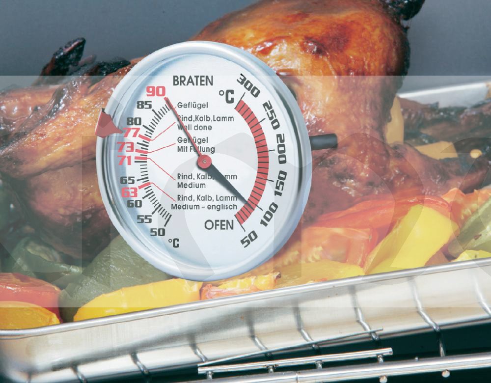S tímto teploměrem na pečení změříte teplotu jak uprostřed Vašeho pokrmu tak teplotu trouby. Nejdůležitější teploty vždy na očích. Tato kombinace Vám umožní perfektní pečení zcela hravě. - Rozsah měření při pečení od +50 °C do +90 °C - rozsah měření trouby od +50 °C do +300 °C - pohyblivá červená šipka pro cílovou teplotu - lze umístit do myčky - měřicí čidlo z nerezové oceli 18/8 s vysoce kvalitní nepřilnavou vrstvou, kvalitní pouzdro z nerezové oceli