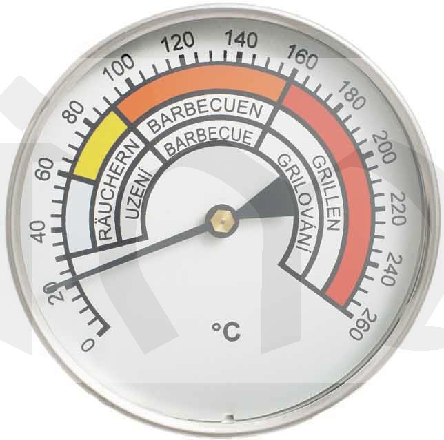 Výrazný potisk stupnice vyznačuje teplotní oblasti doporučené pro uzení, dnes tolik oblíbené barbecue nebo grilování.